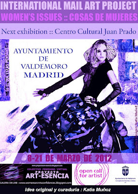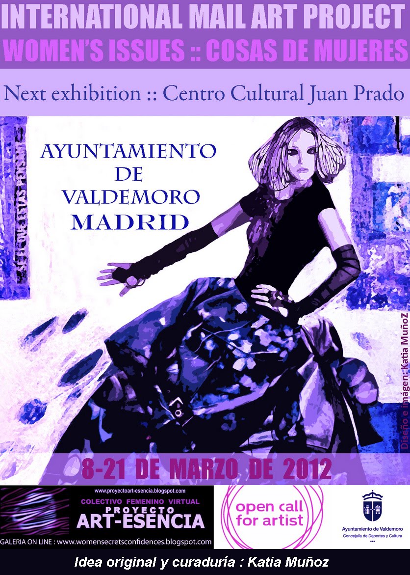 WOMEN’S ISSUES::COSAS DE MUJERES::MAIL ART – MADRID / Uncategorized / Por Katia Muñoz Colectivo Femenino Virtual Proyecto Art-esencia presenta: INTERNATIONAL MAIL ART PROJECT WOMEN’S ISSUES:: COSAS DE MUJERES CENTRO CULTURAL JUAN PRADO AYUNTAMIENTO DE VALDEMORO . MADRID 8-21 DE MARZO DE 2012