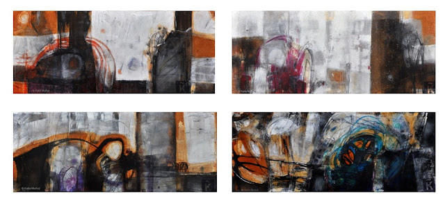 | EXILIOS Serie de Técnica Mixta sobre MDF 40 x 17cm. |